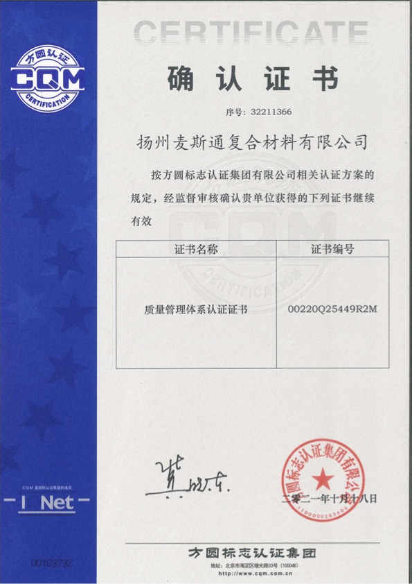 ISO9001【揚(yáng)州麥斯通】